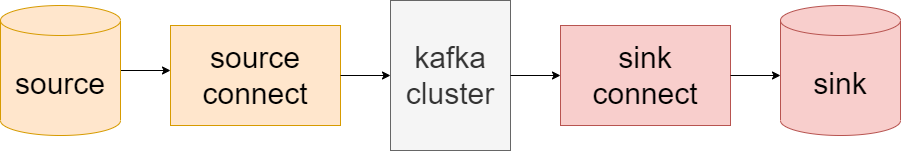 소스 DB와 카프카 클러스터 사이에 위치한 커넥트를 소스 커넥트라 부르며, 싱크 DB와 카프카 클러스터 사이에 위치한 커넥트를 싱크 커넥트라 부른다. 소스 커넥트는 프로듀서 역할을 하고 싱크 커넥트는 컨슈머 역할을 한다고 생각하면 된다.