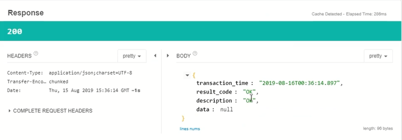 정상적으로 지워졌으면 result_code에 "OK"라고 뜰 것이다.