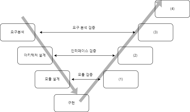 [정답] (1) 단위 테스트, (2) 통합 테스트, (3) 시스템 테스트, (4) 인수 테스트