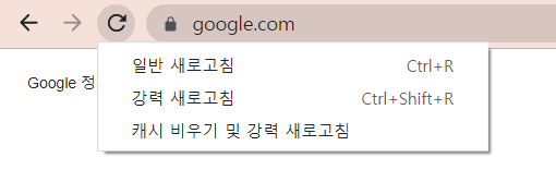 여기서 '강력 새로고침'을 누르면 되며