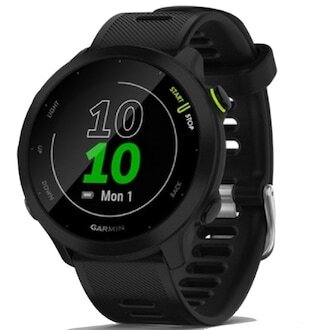 가민 포러너 55 스마트워치는 37g의 가벼운 무게감과 런닝에 최적화된 화면을 갖추고 있습니다.