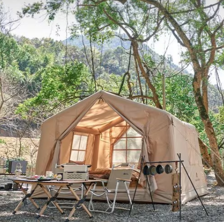 파칭 시간을 단축할 수 있고, 설치화 해체가 빠르고 쉬운 에어텐트가 요즘 대세입니다. 특대형 텐트를 15분 정도만에 설치할 수 있어서 캠핑족들에게 많은 인기가 있습니다.