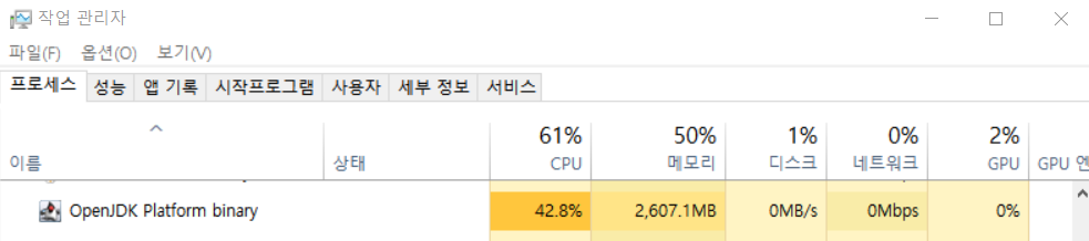 OpenJDK Platform binary 프로세스를 종료시킨다.